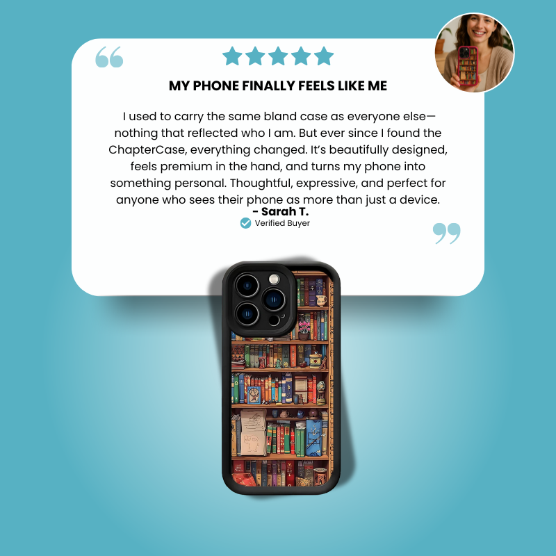 Unlike standard cases, the ChapterCase™ blends protection with personality. It features a hyper-realistic bookshelf design that turns your phone into a statement piece—perfect for book lovers, creatives, and anyone who wants something more meaningful in their hand.